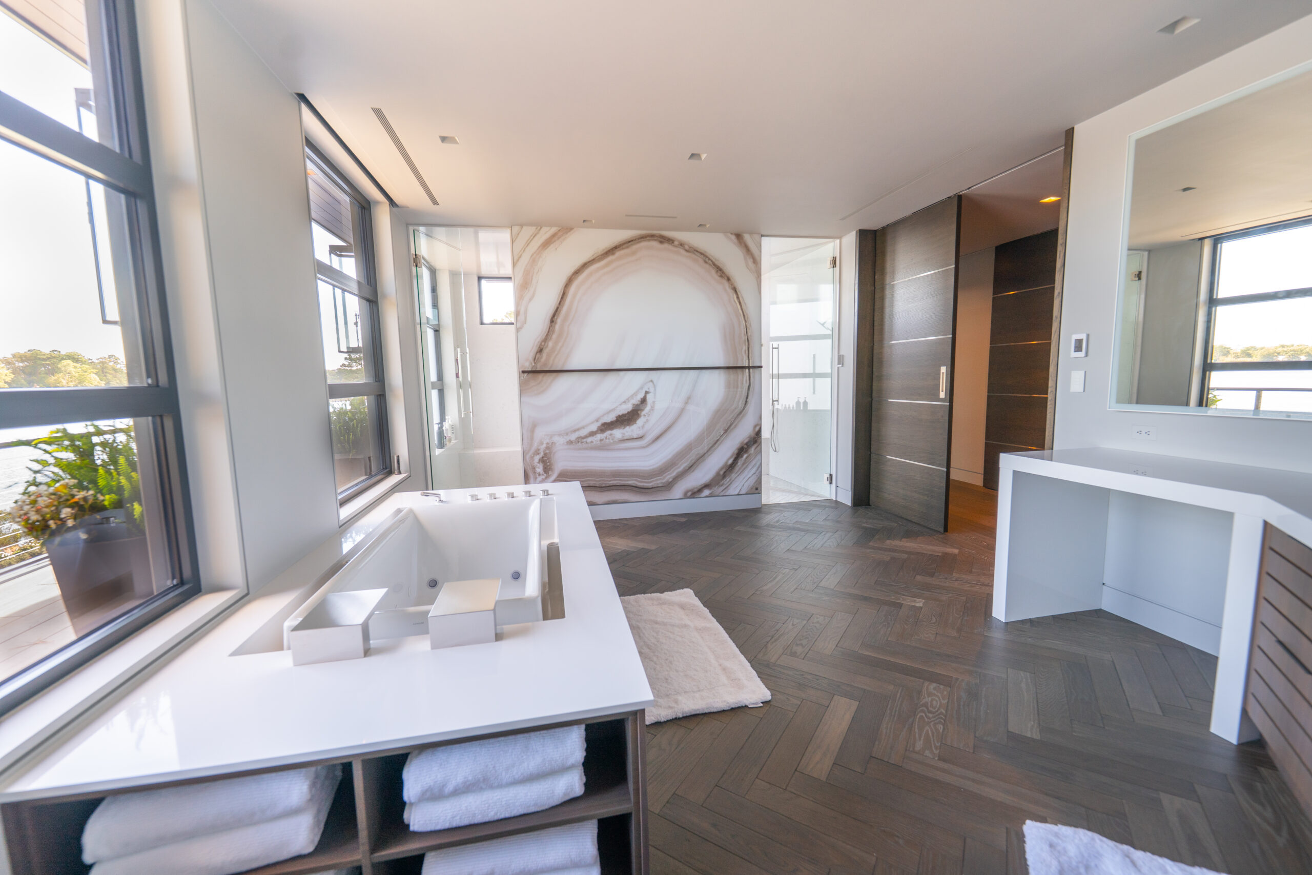 A waterfront residence in Virginia Beach shaped by scale, light, and custom-stained wide plank flooring